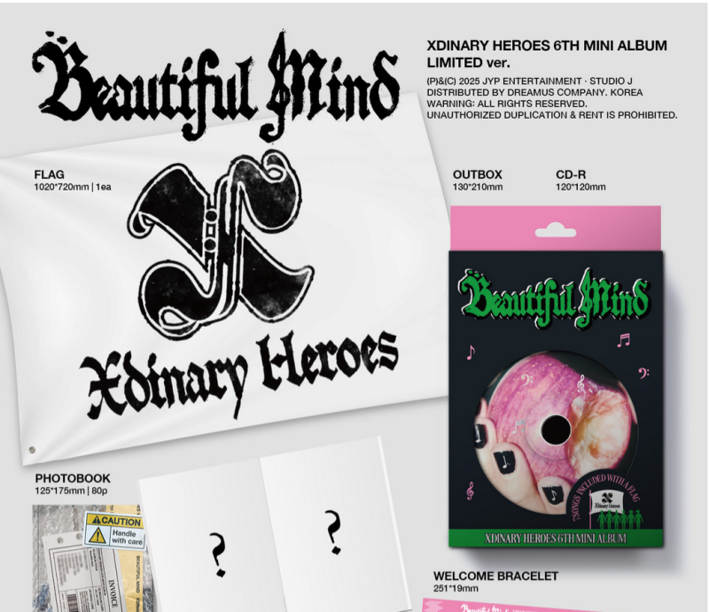 Xdinary Heroes – Beautiful Mind (LIMITED Ver.) е лимитираната версия на най-новия албум на рок-K-pop групата Xdinary Heroes, която продължава да впечатлява с иновативен звук и силни послания. Beautiful Mind изследва теми като самоизразяване, борба и вдъхновение, докато LIMITED версията предлага ексклузивни включвания, достъпни само за ограничен период – идеална за колекционери и истински фенове на групата.