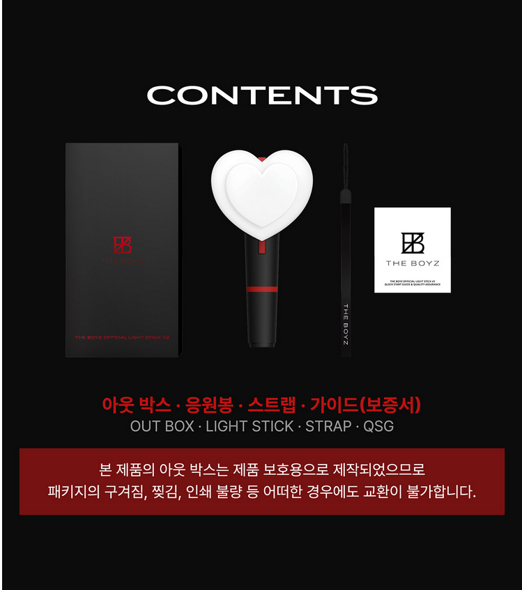 Специален комплект за всички фенове на THE BOYZ, включващ официалния Light Stick V2 и сет от 9 фотокартички (първопресов бонус). Перфектен за концерти, фен срещи и за декорация у дома.