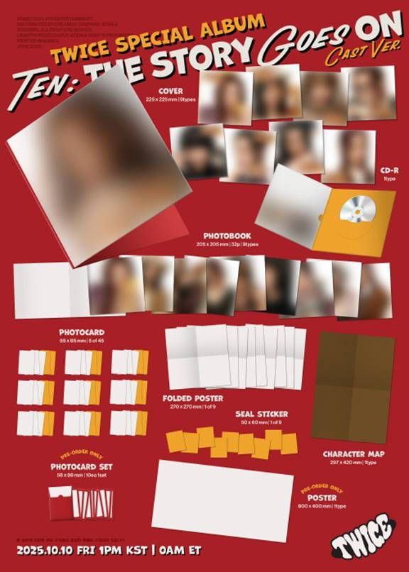 Оригиналното издание TWICE – TEN: The Story Goes On (Cast Ver.) (9 Types Random Ver.) + Random Photocard (BDM) е специално колекционерско издание за феновете на групата. Включва случайна версия (от 9), фотокнига, ексклузивна фотокарта и специални бонуси.