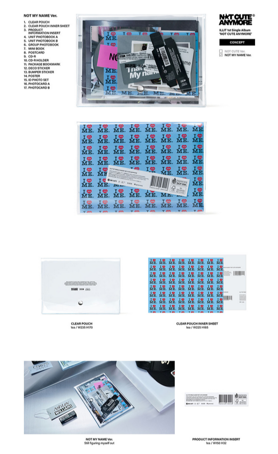 ILLIT се завръщат с дългоочаквания си първи сингъл албум “NOT CUTE ANYMORE”, който показва тяхната нова, по-зряла и уверена визия! Албумът е наличен в две версии — “NOT CUTE” и “NOT MY NAME”, като при поръчка получавате случайна (Random) версия.