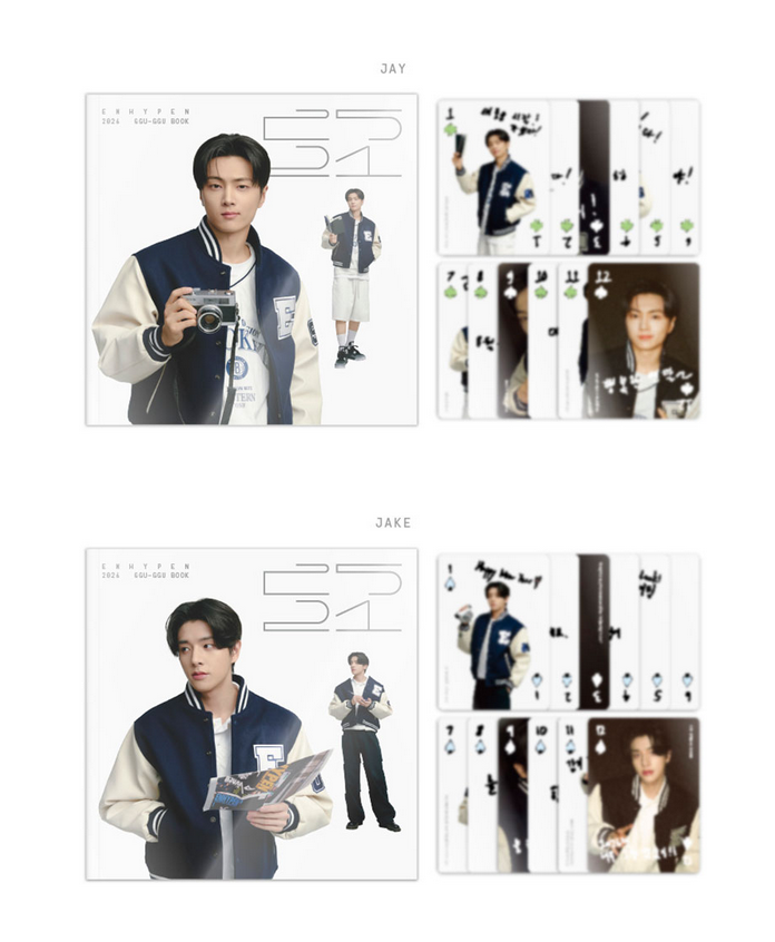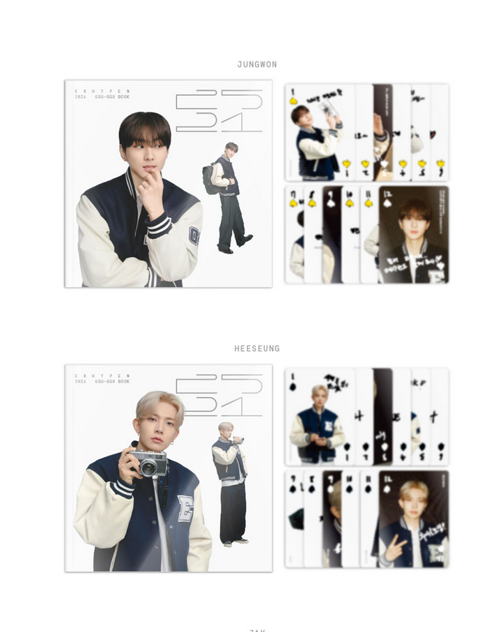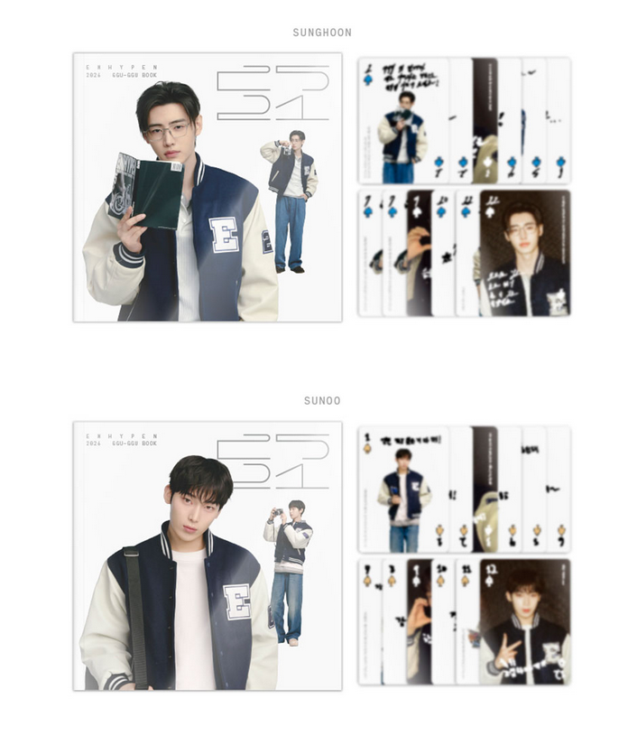 ENHYPEN 2026 GGU GGU BOOK е официално декоративно издание, пълно с оригинални рисунки и ръкописни бележки от членовете на групата. Включва GGU Book (44 страници) и комплект игрални карти (12 карти). Издадено от Weverse, с дата на пускане 8 декември 2025 г.. Прекрасно допълнение за ENGENE колекцията — може да се комбинира с Season’s Greetings или да се поръча отделно.