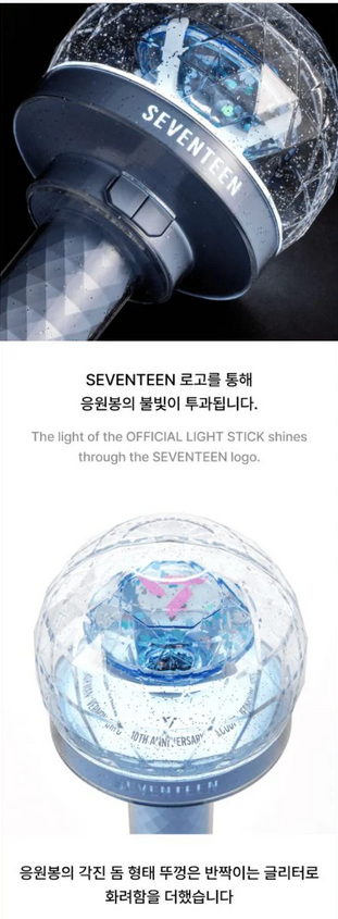 Този Official Light Stick е задължителен за CARATs, колекционери и фенове, които искат да подкрепят SEVENTEEN с официален мерч по случай 10-годишния юбилей на групата.